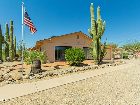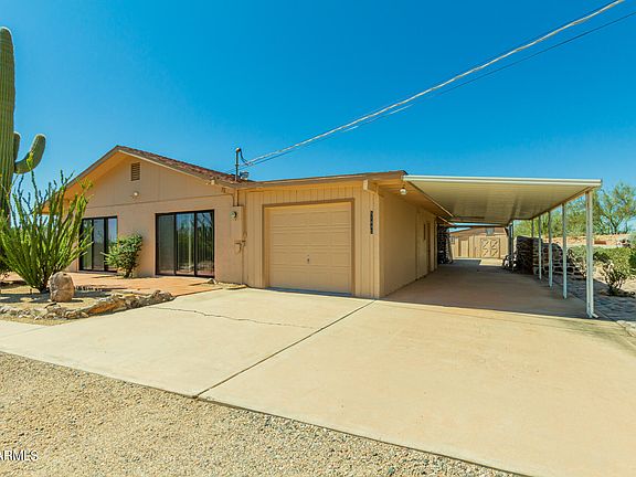 You'll LOVE this outstanding property w/ a lovely desert landscape & breathtaking views surrounding it! The wonderful home offers 3 beds, 3 baths, 1 car garage, & carport parking. Enter to find a formal dining room w/beehive fireplace, carpet & tile floors t/out, & tons of natural light. The large living room opens to the kitchen and boasts multi-sliding doors to the front patio. The kitchen has ample wood cabinetry, spacious counters, recessed lighting & a breakfast bar. Two bedrooms have separate exits & private bathrooms, making both the main bedrooms. The Arizona room w/fireplace is the ideal resting spot w/out worrying about the weather! Out the back, you have a detached workshop w/attached storage shed. Enjoy the neighborhood's tranquility & mountain views! Possible room for horses!