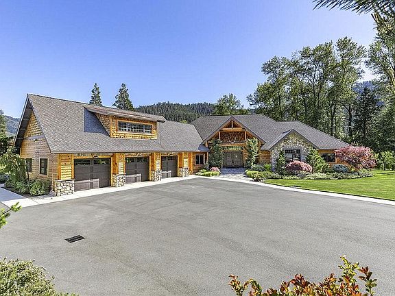 One of the finest riverfront estates in Southern Oregon! This Pacific Northwest Craftsman style home features Fir truss beams/rough sawn timbers/trim work/custom crafted Knotty Alder-hand knurled entry doors/Heart Pine reclaimed wood floors/towering vaults/massive stone fireplace/Sierra Pacific wood windows/spectacular views of the famous Rogue River/chef style kitchen w/Rustic Hickory cabs./granite slabs/tile backsplash/cast iron farm sink/Wolf 6 burner gas stove/electric oven/plus Kitchenaid double wall convection oven/microwave/Sub-Zero refrigerator/plus Sub-Zero drawer cooler/freezer combo in center island/covered/enclosed patio/entertainment area w/electric screens/built in BBQ/custom stained concrete/overlooking park-like setting/river. Master suite w/stone propane burning fireplace/travertine floors/his/hers sinks/clawfoot tub/locker style shower/private water closet w/bidet/huge closet. Office/den/addl. gaming areas/bonus rooms. RV Pkg.-hook ups/security gate/irrigation rights.