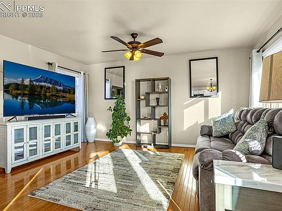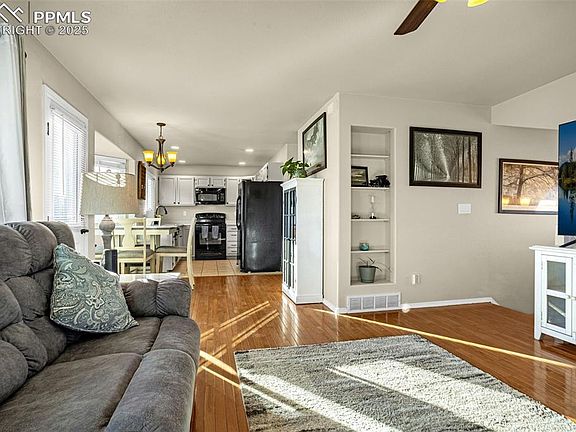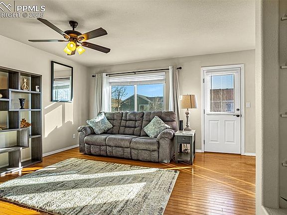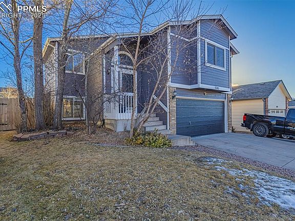 Welcome to Sundown, a highly sought-after neighborhood just minutes from Cottonwood Creek Park, scenic trails, top-rated schools, and endless shopping and dining options. With easy access to Powers Blvd and Dublin, commuting is a breeze. This charming 3-bedroom, 2-bath bi-level home offers over 1,350 sq. ft. of well-designed living space. The inviting curb appeal leads you into an open-concept upper level featuring hardwood floors, a bright living area, and a spacious kitchen with ample cabinet storage. Large windows fill the space with natural light, creating a warm and welcoming atmosphere. Downstairs, you’ll find a cozy family room with a gas fireplace—perfect for relaxing evenings or a versatile home office setup. Step outside to take in breathtaking mountain views from the expansive backyard, ideal for entertaining or unwinding after a long day. Don’t miss this incredible opportunity in a prime location!