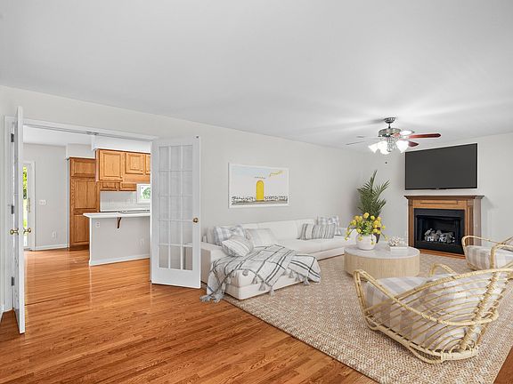 Step inside to a spacious and inviting living room featuring a cozy fireplace and stunning French doors that lead into the eat-in kitchen. The kitchen is a dream for both cooking and entertaining, with a center island and built-in stove, plus a designated area for your dining table. A convenient half bathroom is also located on the main level near the kitchen.