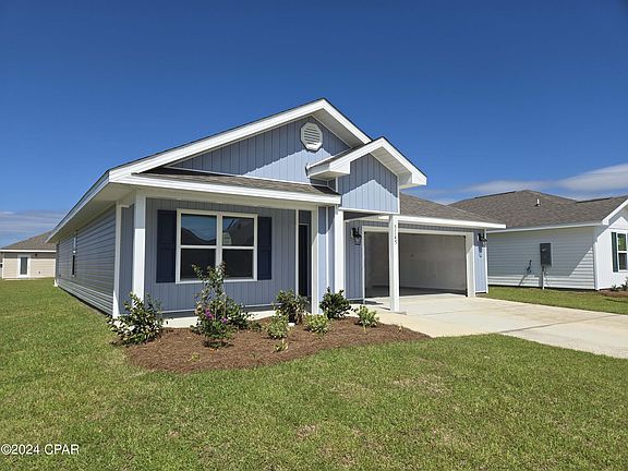 The primary bedroom has soft carpet and its own bathroom featuring a spacious walk-in closet, a double vanity with laminate countertops, and a separate shower and tub. Welcome to Titus Park, a new home community in the lovely Panama City, Florida. Located right off Highway 231, it is conveniently located close to shopping, food, great schools, and not far from Tyndall Air Force Base. Across the street from Titus Park, you will notice that a large grocery store just opened, making it convenient to grab what you need without traveling far from home. You also will be close to 23rd street in Panama City, which has a multitude of shopping, food, gyms, and more.
