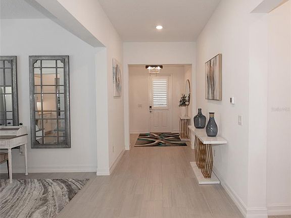 Luxury Living with Sunset Pond Views in Southern Hills. Step into refined elegance with this recently built residence in the gated Southern Hills Plantation Club community. Designed for comfort and sophistication, this home features three ensuite bedrooms, including a spacious primary suite—each offering the privacy of its own full bath—making it perfect for both family and guests. A versatile flex room complements the open floor plan, while the chef’s kitchen serves as the heart of the home, featuring an oversized island, walk-in pantry, and butler's station.A three-car garage with attic storage ensures ample space for vehicles and belongings, while thoughtful upgrades elevate this home well beyond builder basics. Designer light fixtures, custom ceiling fans, and plantation shutters add timeless character. A whole-house water filtration system with built-in reverse osmosis provides pure drinking water for everyday living. The outdoor spaces are equally impressive. Enjoy a screened lanai, oversized patio, fire pit, and fenced yard, all overlooking a peaceful pond with a soothing water feature. Facing west, the home captures breathtaking sunsets framed by moss-draped oak trees—an idyllic backdrop for entertaining or relaxing evenings. Residents of Southern Hills enjoy a Pete Dye–designed championship golf course, resort-style clubhouse with dining, fitness center, pool, tennis courts, and scenic walking trails. Just a short drive to Tampa Bay, this home combines luxury, convenience, and natural beauty in one extraordinary package. Experience Southern Hills living at its finest—schedule your private showing today.