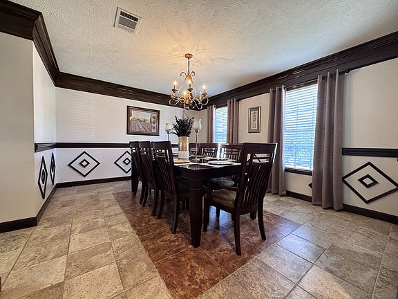 Patio areaTree areaSpacious breakfast areaKitchen with maple cabinetsArea of game roomCustomized walking closetFormal dining room