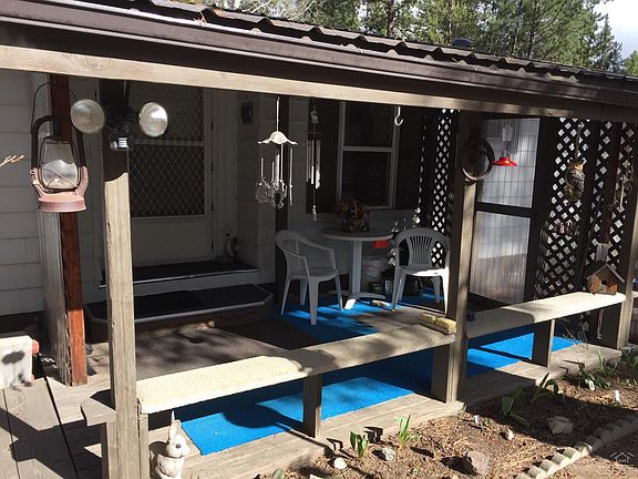 House has been well maintained. Metal roof. Clean, nearly 1 acre lot. Mature ponderosa pine and aspen trees. 2 car garage with 2 lean-tos and RV cover for additional storage. House is being sold as is.