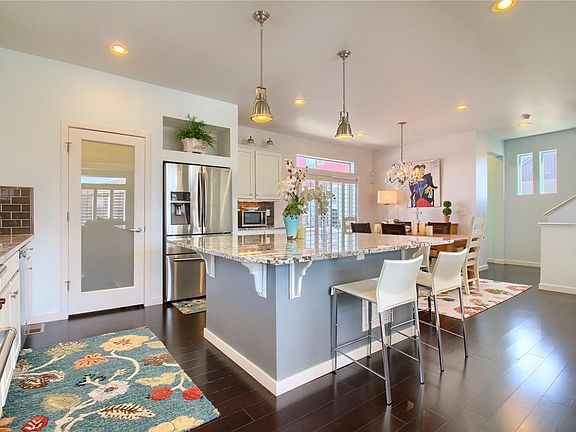 Best kitchen in Green Valley Ranch! Gorgeous granite and a 36" Wolf range that would make any Chef proud. This home is beautifully decorated and meticulously maintained. There are many upgrades in this home that include engineered hardwood flooring, cabinets, granite, plantation shutters, custom master closet and transom windows. Multiple balconies for entertaining and a fantastic, stamped concrete patio in the back yard. Additionally, new siding was recently installed. Great location and close to DIA, I-70, I-225. Walk to parks and the Beer Garden. Please check out the virtual tour too!