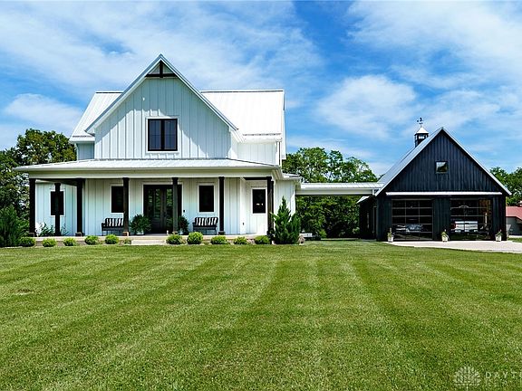 Welcome to perfection! This STUNNING custom four gables farmhouse is sitting on just under 4 acres and offers 4900 square feet of perfect living which includes the stunning finished basement! Beautiful exterior featuring standing seam metal roof as well as a large oversized garage/barn attached with a breezeway! Enjoy the peace and tranquility on either the front porch or back covered patio. This home offers soaring 10ft ceilings on the first floor and 9ft on the second floor and basement. This AMAZING kitchen features all professional appliances including a 48in dual fuel stove with two ovens, gorgeous quartz counter tops, beautiful backsplash, open floating shelves and a spacious pantry! The entire first floor is real hardwood floors, and the lighting through out is spot on perfect! The great room offers a beautiful Herringbone pattern wood burning fireplace with built in log holders. The master bedroom/bathroom is like having your own home spa! Its incredible! The free standing tub, two walk in closets, the tiled shower, double sinks... it's literally an oasis! Upstairs you'll love the fact that every single inch of this house has been utilized and has a purpose! Even a cubby in one of the bedrooms is a darling "she shed"! All the rooms have walk in closets and the bathrooms are just plain perfect! The finished basement is better than great, it's outstanding! There is an open bar with concrete countertop opened up to a huge rec room, a full bath next to the office/workout area and tons of storage AND another room that is currently being used as a 5th bedroom but can be used for so many things! Outside you'll love the tree lined back yard and the space to add a huge building, play set, pool or just leave room to run or enjoy the quiet, it's up to you! The garage was Amish built and has Trusses for future over head storage. This dream house needs to be YOUR dream home! Don't delay, houses like this don't come along everyday!