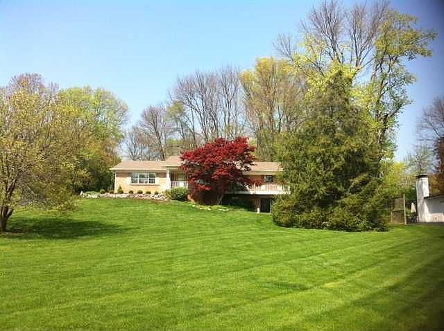 Wonderful Mid-Century Ranch w/walkout basement & beautiful views overlooking Fall Creek Rd. This hilltop home sits on 1.3 acres & features form & function of a mid century modern home w/ all the panoramic windows, 2 fireplaces, large covered front porch, hardwood floors, retro kitchen, 3 full bathrooms, finished walkout basement/inlaws area plus storage/craft/bar area & full bath. Home also includes: New A/C '12, New paint inside & out '11, new dimensional roof '07, mini barn, lots of storage.