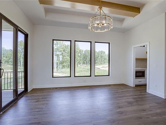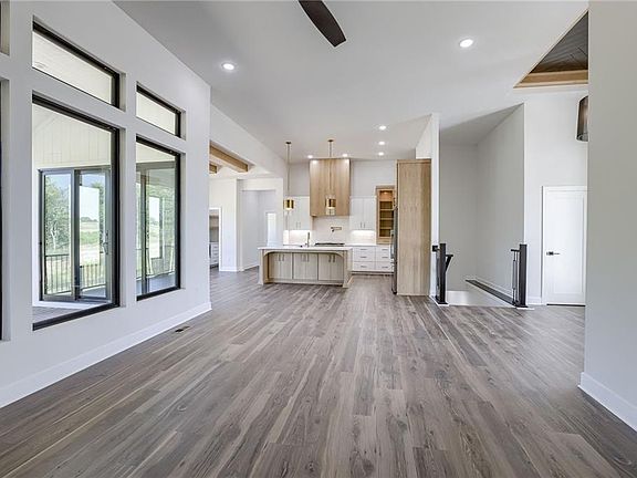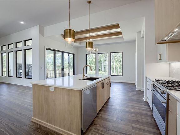 Stunning and modern reverse 1.5-story home featuring a gourmet chef's kitchen and an extra-large owner's suite with a luxurious bath. Engineered hardwoods throughout the main floor common areas and owner's suite. The main floor guest suite includes a full bath. The home is EV charger ready. The open floor plan showcases white oak accents in the kitchen and a modern fireplace in the great room. With 12ft ceilings, stained white oak, a deck fireplace, an extra-deep garage, light oak vanity, soaker tub, and dual shower heads in the owner's suite, this home is designed for comfort and style. Equipped with a 36" gas Fisher and Paykel high-end stove, and other high-end appliances. Enjoy engineered hardwood floors in the owner's suite, living spaces, and the lower level. The deck features a bi-partisan door and measures 12'x20' for an enticing indoor/outdoor experience. Located in the highly sought-after Montebella subdivision with quick access to Parkville, Park Hill South, Briarcliff, North Kansas City, and downtown. Enjoy the neighborhood pool and clubhouse in the summer and don't miss the beautiful, flowing waterfall fountain. This home is complete and move-in-ready!