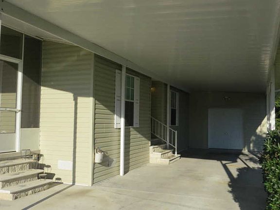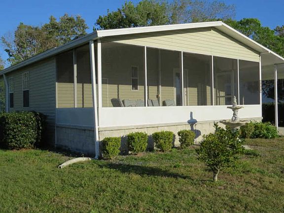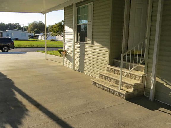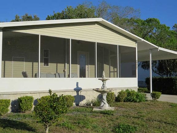 This beautiful home is situated in a 55+ community with a cozy, quiet, neighborhood feeling, that is close to everything. 3 bedrooms and 2 full bathrooms with too many upgrades to list. Inside laundry,breakfast bar, custom eat-in tiled kitchen with stainless appliances,living room with wood floors,large closets,bull nose walls,dimmer switches,ceiling fans in every room, high performance windows, Kenmore Elite water softener,and a large Florida room with beautiful windows. Large carport to fit 2 cars, large storage area with garage door, and concrete double driveway attached. Outside has vinyl siding, gutters all the way around,and 220 junction box so a hot tub man be added. *HOA costs are $420 a month. HOA cover lot rental, taxes, lawn maintenance and trash, community pool, and clubhouse.