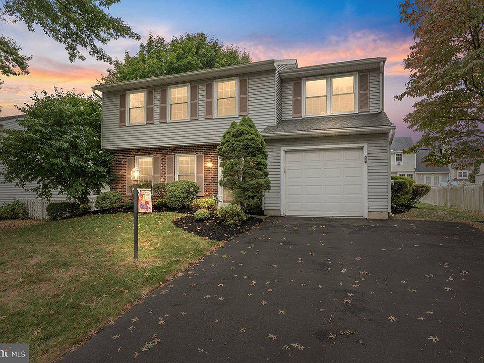 Welcome to this meticulously maintained 4 bedroom, 2.5 bathroom, two story colonial that's ideally situated on a sizeable lot in the highly desired Judson Meadows Section of Bensalem. Approaching you will immediately notice the pride of ownership with the amazing curb appeal that displays tasteful landscaping, lovely brick accent exterior, newer roofs, large paved driveway the allows for parking multiple vehicles, and a pristinely manicured exterior. Enter to find a bright and spacious formal living room with plush w/w carpeting that carries into the formal dining room which is the perfect size for those large family gatherings. The charming eat-in kitchen includes plenty of cabinetry, an abundance of counter top space, built- in appliances, timeless parquet flooring, and it's adjacent to the half bath, laundry/mechanical room with all the amenities, and inside access to the one car garage.  The centerpiece of this magnificent home is the extensive family room which showcases a floor to ceiling brick fireplace, recessed lighting, cathedral ceiling with ceiling fan light fixture, and access through the Pelle sliding glass door to the serene enclosed patio that displays multiple oversized windows that allows an array of natural light.  On to the second floor which you will find the primary bedroom with an en suite bathroom, massive walk-in closet, and ceiling fan light fixture. The additional 3 bedrooms are all a generous size that include ample closet space and ceiling fan light fixtures. There is also a vast 3-piece hallway bathroom with dual vanities and delightful ceramic tile flooring. Additional features include a private rear yard with tree shaded sitting area and plush green, newer windows, close proximity to train station, all major highways, and shopping. This home has been impeccably maintained throughout the years and it clearly shows!!