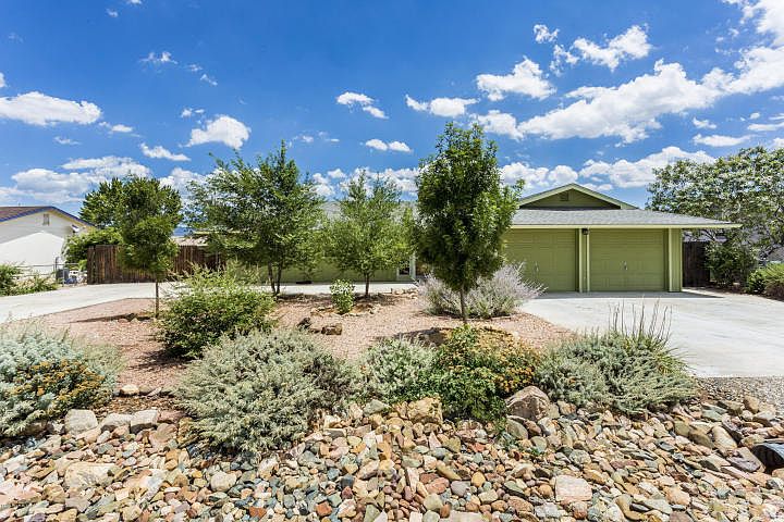 Turn key affordable 3 bedroom 2 bathroom in heart of Prescott Valley! Excellent curb appeal with Fresh exterior paint & brand new interior paint. Open floor plan with great room, engineered hardwood floors & tile in traffic/wet areas. Bright kitchen with laminate counters, island, stainless fridge, dishwasher & bay window overlooking the private backyard oasis with trex decks, pergola with creeping trumpet vines, storage shed & easy care landscaping on drip system. Master features walk-in closet, access to private patio, tile vanity & separate shower. Amazing fully enclosed AZ room with multiple glass slider exits & tile/stone floors.Oversized attached 2 car garage plus separate RV driveway/parking pad & RV Gate. Home is fully fenced and in an Ideal location!