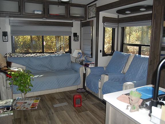 The 3 bedroom, 2 bath, 1140sf manufactured home sits on 3.26 acres with a view of the mountains, wooded area behind the home, and really close to the Rogue River. The home is currently rented, no photos of the interior due to tenants personal belongings. There is also a 2020 40' 5th wheel included in the sale, full RV hookups.