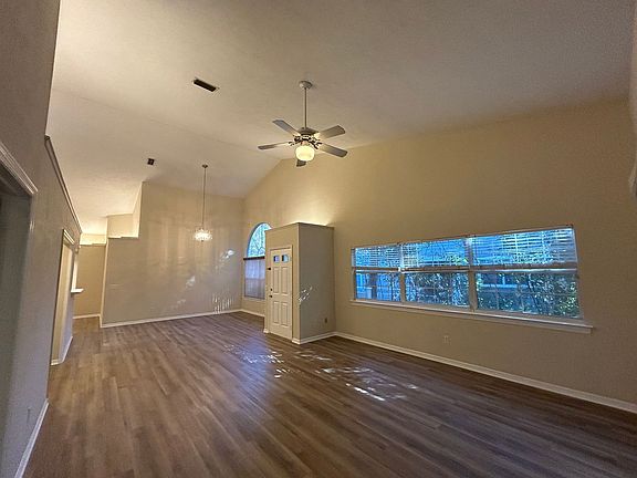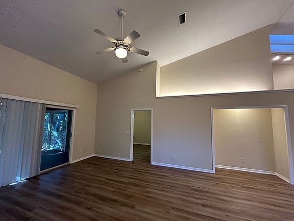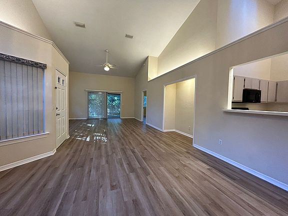 Vintage View 3/2 with Two Car Garage This Charming 3/2 attached home with two car garage is located in Vintage View with immaculate amenities and great proximity to major commute routes. You will absolutely love your new neighborhood!! Take quiet walks with established landscaping, expertly maintained yards, HOA guidelines that are respected, majestic tree canopies, and a strong sense of community with your neighbors. This home is bright and airy with vaulted ceilings, plenty of natural light, and a neutral color pallet to allow for your own special decor to stand out. There is a kitchen with new and well maintained appliances. A very large, inviting open living space that boasts a living room and two possible dining areas. Extremely spacious floorplan with vinyl plank flooring throughout. This three bedroom home has two large guest bedrooms with lots of extra storage closets, shelves, and built ins. The master has a large ensuite with two separate bath and shower rooms and ample walk in closet. The laundry room has full size washer/dryer hook ups with shelving. Your large back patio is completely screened in with ceiling fan and light that allows for year round outdoor enjoyment. Perfect location close to campus, shopping, and dining. Amenities include a fully screened in community pool, basketball court, pickleball court, book borrowing/library room, community gardens, and rentable equipment for pickleball or tennis. You may also rent and host from the community center for your group events. To learn more about the neighborhood, you can visit the Vintage View website for amenity and HOA rules. Pets considered on a case-by-case basis: Non Refundable Pet Fee $300 Monthly pet rent $35/mo. per pet Application fee: $50 per adult. Anyone 18 and over must apply. Administration fee: $250 Security deposit is equal to one month's rent Schedule your showing today!