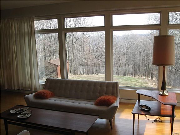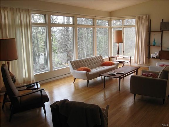 Sprawling custom designed Mid-Century Contemporary Ranch with 3 bedrooms and 2.5 bath perfectly situated on 1 acre lot offering incredible views. Spacious rooms with walls of windows is perfect for entertaining. Features include stunning foyer with Vermont blue stone floors. Floor to ceiling blue stone fireplace and hardwoods in large great room. Formal dining room with hardwoods. Eat-in kitchen. 3 fireplaces. First floor office/den with fireplace. Large partially finished walk-out basement leads to flagstone patio. Approx 1700 sq ft of additional finished space in lower level (not included in sq ft). Westhill schools. Close to OCC, hospitals and S.U.