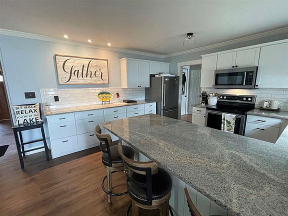 Lancelot Waterfront with 98ft of frontage and totally REDONE interior design and exterior. Beautiful renovated kitchen, with granite counters, new appliances, custom blinds and all done in beautiful shades of grays and white. Bathrooms: have custom tiled walk-in rain showers, with shelves, stone floors, custom vanity, linen closet. Living room: all new gas fireplace with TV above. crown molding, custom blinds (no popcorn ceiling), custom lighting. Upper Level: Entr stairs through a beautiful barn door. At the top a closet and custom full bath with granite, stone and tile shower, all custom glass doors, dual vanity and a large dual closet with barn doors that slide to give access to large TV. Exterior: All new slide proof poxy flooring in garage, custom super quiet garage door. Lakefront: Steel seawall, permanent door, large deck off dining room and shed for additional storage. All of this and total home is wifi accessible by phone for security, lights, fireplace and more. Garage: has a heater, plenty of storage cabinets, work bench and still roomy for 2 cars. With ownership you have access to all of Sugar Springs amenities, golf, golf simulator, tennis, pool, and several beach clubs on Lake Lancer and Lake Lancelot.
