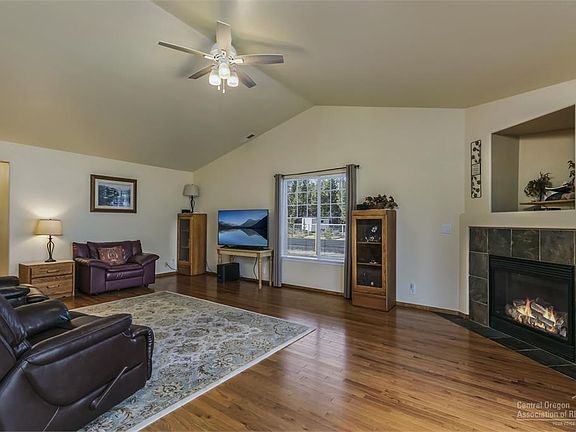Open floor plan, with separation of master bedroom from other two bedrooms. Walk in closet in master. Gas fireplace in frontroom. A/C installed in 2016. New oak hardwood floors in living room, hall and master bedroom. New tile in kitchen and guest bathroom. New stainless steel appliances in kitchen. Fenced backyard with large storage shed and covered patio. RV parking.