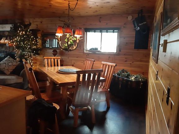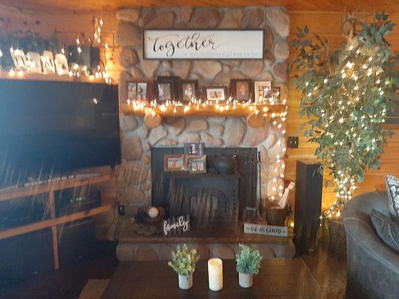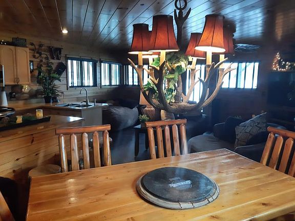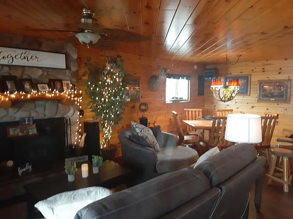 This quality one of a kind home on desirable all sports Vaughn Lake is what dreams are made of. Three story home boasts custom touches throughout. From the knotty pine interior to the river rock floors & everything in between, you'll want to allow yourself plenty of time when you schedule your appointment. Open the french doors in the master bedroom to the Cabana on the deck offering privacy & spectacular views. Bonus room over garage can be finished to create a seperate living space. This home is the perfect place for entertaining all summer long. Enjoy the Tiki hut or just relax around the firepit after a day of playing on the water. Just unpack & enjoy!