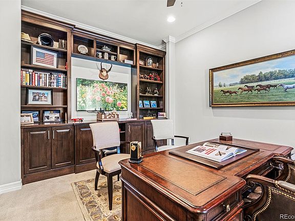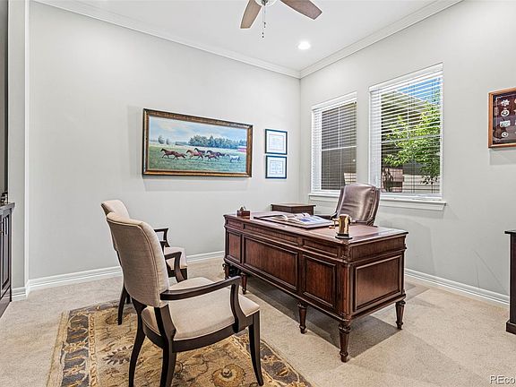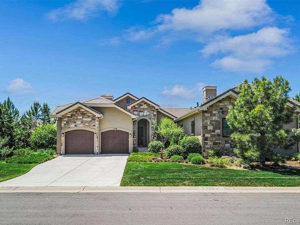 Welcome to 5148 Le Duc Lane, a stunning residence nestled in the private and gated Castle Pines Village. This elegant home offers 4 bedrooms, 4 bathrooms, and a spacious 3,412 square feet of finished living space. Situated on a private cul de sac, this property boasts breathtaking mountain views and a walk out basement. The low-maintenance lifestyle is complemented by an array of amenities, including a community pool, tennis and pickle ball courts, and a fitness center. Step inside this custom home complete with hardwood floors, cast stone fireplace, gourmet kitchen with custom cabinets, Thermador appliances, and designer lighting. The stunning main floor primary bedroom offers mountain views, custom tiled ensuite bathroom with heated flooring, walk-in closet and private access to the deck. The walkout basement is sure to impress with a large wet bar and island, family room, and two additional guest rooms. This home is the epitome of low maintenance luxury living behind the gates of Castle Pines.