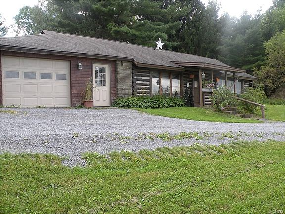 TWO FOR ONE! Cozy brick ranch with hardwood floors throughout, fireplace, new bathroom, full basement, all with incredible views! A second dwelling has a garage area, a heated wood stove area, lots of room for whatever you would like. Could be a second residence for family, friends, possible rental income, or business. Wow, so many possibilities! Walking down the driveway to go to work! Imagine that! Log dwelling has a cement floor, plumbed in bathroom and waiting for your imagination! The property is very close to amenities, yet very private. Backyard is secluded, borders woods, where wildlife frequent. Child's playhouse in back yard has electricity. Zoned commercial and residential. Make it your own, your own oasis, 1.75 acres for your enjoyment, your family, your friends, your memories