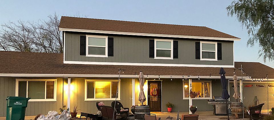 This is a Beautiful 4 Bd. 2.5 Ba 2 story ranch style home, situated on a hill with 2.5 acres of useable land with expansive views. This home boasts a large vaulted beam ceiling in the family room with a beautiful, warm and cozy gas stone fireplace for large family/friend gatherings (20’x25’). There is a Large Master bedroom/bath suite (13’x18’) and larger bedrooms. The front and backyard have large cemented patios, great for entertaining. There is a very large greenhouse for growing your own fruits and vegetables, fruit trees, grapevines, and a chicken coop with laying hens providing fresh eggs. New dual pane windows and sliding glass door, 2 new exhaust fans/heaters in upstairs baths. New 30 Year roof installed and freshly painted exterior (yr.2021).