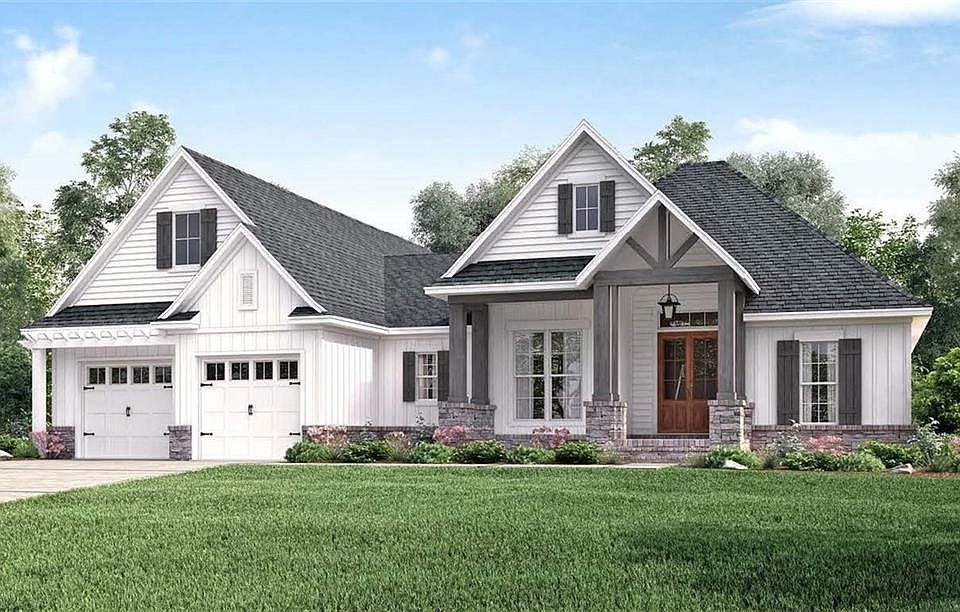 Welcome to your dream new construction home on nearly 3 acres of land! This 3-bedroom, 2-bathroom home offers a well designed blend of modern and comfortable living. With an open concept layout and covered back porch this home is perfect for entertaining guests. As you enter, you'll immediately notice the attention to detail and finishes throughout. The spacious master suite is a true retreat, featuring a large bathroom complete with a freestanding tub, double vanities, granite countertops, and a tile shower. The split floorplan places the two additional bedrooms and a secondary bathroom on the opposite side of the home, ensuring privacy and convenience for all. For those seeking even more space, there is an enticing option to add a bonus room with a full bathroom for an additional cost. This flexible space can be customized to suit your needs, whether it be a home office, a playroom, or a guest suite. The possibilities are endless! PLEASE NOTE: PICTURES ARE NOT OF ACTUAL HOME. HOME IS IN THE PROCESS OF BEING BUILT AND PLAN MAY VARY AT BUILDERS DISCRETION.