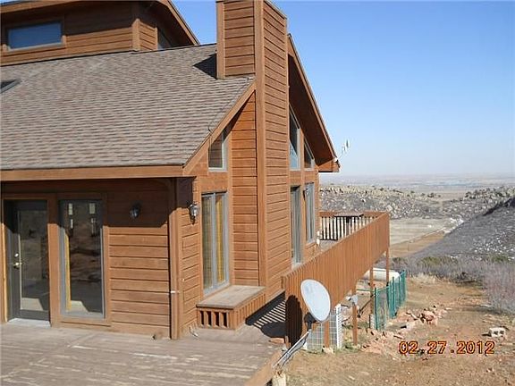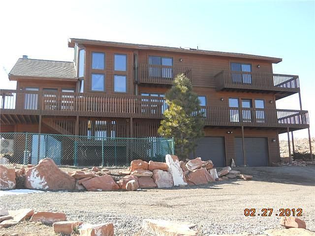This custome home has spectacular views all around. Large home on 42 acres, decks, open floor plan, fireplace, new paint and carpet. Spiral staircase to teh upper level, lower level recreation room and office with sliding glass doors. Buyers should pre