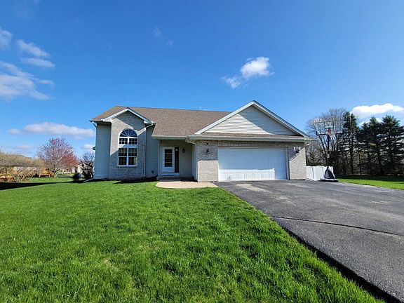 Close to the city but just enough country to give you that peace and quiet feeling! Located in Kelley Meadows with easy access to HWY 20 and Winnebago schools, this great 5 bed, 3 bath 2 story provides you with plenty of space to live your dreams! This home features vaulted ceilings in the 2 story living/great room with brick/stone fireplace and celestial window giving off plenty of natural light, granite countertops and oak cabinets throughout. The master suite features a full bath and walk in closet. This home features new vinyl floor planking, freshly painted interior, newer carpet and new granite vanity tops. The slider off of the dining room leads out to the large deck overlooking the surrounding park like yard.