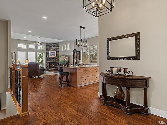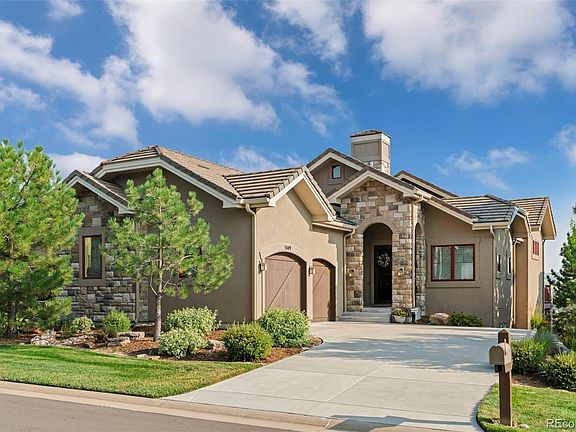 Welcome to 5149 Le Duc Lane, a stunning residence nestled in the private and gated Castle Pines Village. This elegant home offers 4 bedrooms, 3 bathrooms, and a spacious 3,526 square feet of finished living space. Situated on a private cul de sac, this property boasts breathtaking mountain views and a walk out basement. The low-maintenance lifestyle is complemented by an array of amenities, including a community pool, tennis and pickle ball courts, and a fitness center. Step inside this custom home complete with hardwood floors, real stone fireplace, gourmet kitchen with custom cabinets, Bosch appliances, and designer lighting. The stunning main floor primary bedroom offers mountain views, custom tiled ensuite bathroom, walk-in closet and private access to the deck. The walkout basement is sure to impress with tall ceilings, family room, two additional guest rooms, and a full bathroom. This home is the epitome of low maintenance luxury living behind the gates of Castle Pines.