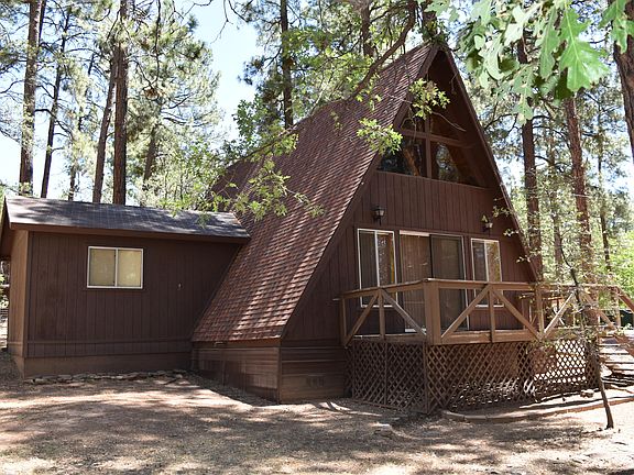 Nestled in the tall pines, this A frame cabin offer all of the amenities expected with small town and mountain living.
