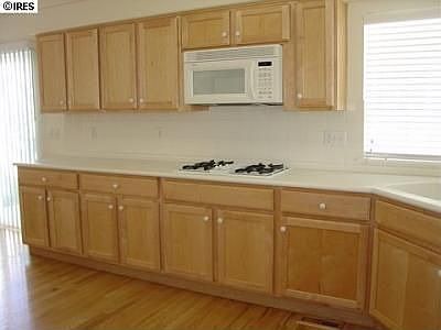 Fabulous home! Lots of upgrades! Prime, south facing corner lot. Aspen trees shade a 10K Trex deck built on helical piers. Gorgeous master bedroom with sitting area & fireplace. Hardwood floors throughout 1st level. Maple cabinets, vaulted ceilings, ceiling fans, A/C, Corian, gas cooktop, 2 ovens, unfin. basement. Ref, washer, dryer, home warranty. 2 outdoor pools, (indoor pool w extra fee), golf, parks, walking paths, playgrounds. HOA maintains lawns. NEW CARPETING. PLEASE REMOVE SHOES. Thanks.