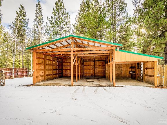 Charming La Pine horse property. Close to town. This cute home features laminate flooring, updated bathroom, tiled kitchen counters w/backsplash. Large master bedroom w/slider to back patio. In addition to central heating, stay warm with a pellet burning stove. Fully fenced property. Outdoor features include: Covered parking for car or RV, a horse barn and pastures, large covered back patio, storage shed and shop. Not a manufactured home.