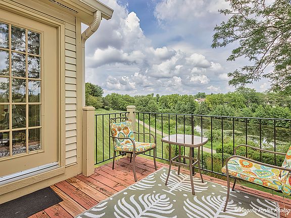 This spacious end-unit townhome is superbly maintained and tastefully decorated. Desirable Fairfax model! It features 2 bedrooms plus a den and 2 full bathrooms, with a 1-car attached garage. The home boasts tons of natural light and great views of nature! The kitchen, recently updated in 2019, is absolutely stunning, featuring 42" cabinets and stainless steel appliances. Spacious living/dining room area has vaulted ceilings, recessed lighting, and a cozy gas fireplace. Step out onto your private deck for more beautiful views, with walking trails accessible right from the porch side! The foyer entry includes a front door and a guest/storage closet. Large master suite has vaulted ceilings, 2 closets (one being a walk-in), and an elegant spa-style bathroom with a separate soaker tub and stand-alone shower. The secondary bedroom and den are both spacious and well-lit with natural light. The den features French doors. Attached 1-car garage includes overhead storage and a garage door opener. Extra common-area parking is adjacent to the garage. Additional special features include vaulted ceilings in the living room and master bedroom, upgraded sustainable cork flooring, and new windows & window treatments. This home is situated in a great cul-de-sac location with wildlife views. The area offers excellent schools, shopping, county and state parks, and convenient transportation options including the Metra Train Station. Pets are allowed. You and your family will be pleased and proud to call this condo and community home.