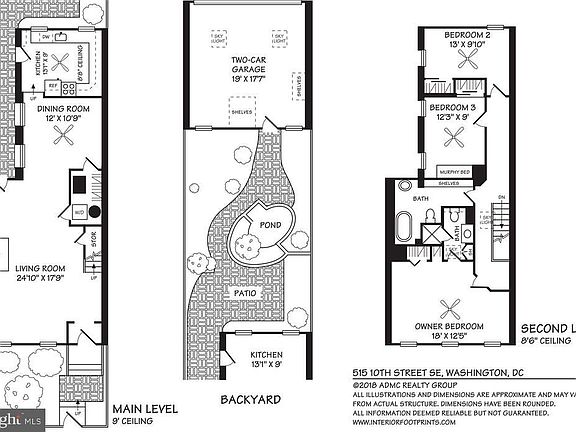 3 BD/2 BA 1905 Capitol Hill Historic District Row House with 2 car GARAGE on beautiful tree lined street! Just two blocks to 8th St/Barracks Row, Eastern Market, METRO, Trader Joes and much much more! Very quaint garden/courtyard with koi pond between house & garage. Many original details still remain including claw foot tub, woodwork and wood burning FIREPLACE with original mantle. 1746 square feet - main level OPEN FLOOR PLAN! Walk Score of 95! The property is being sold AS IS.