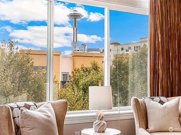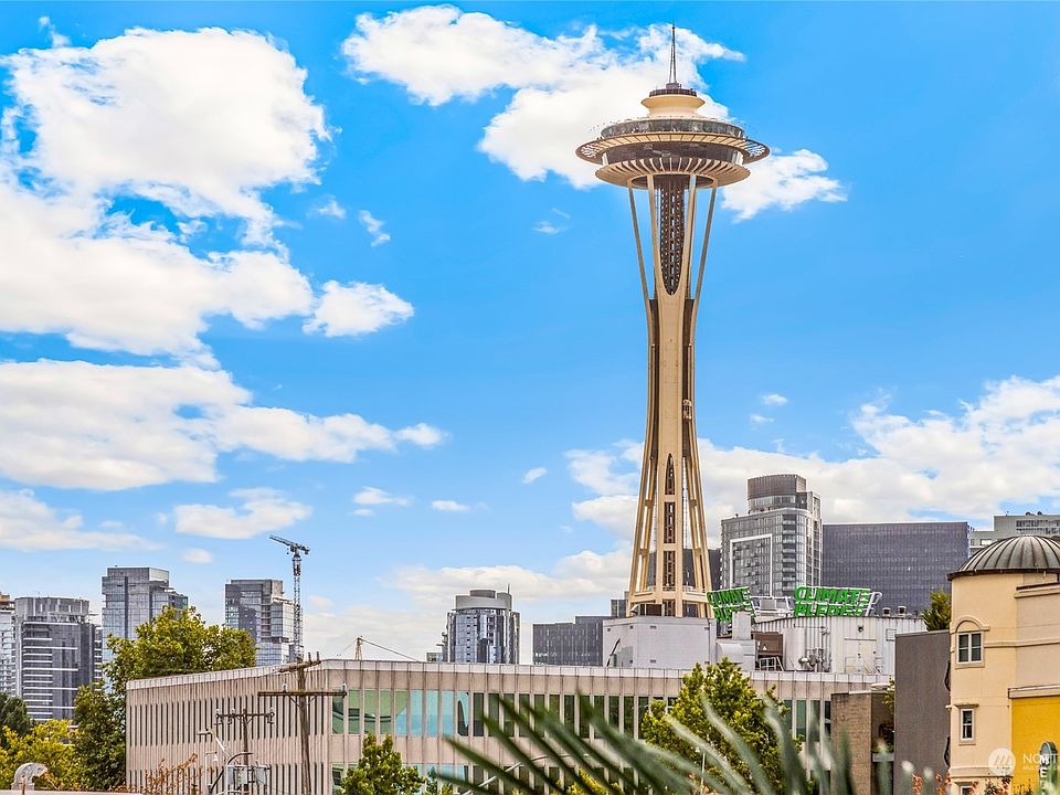 Amazing views of the Space Needle and downtown Seattle in wonderful lower Queen Anne. This light and bright 2BR/1.75BA home has so much to offer. Enjoy sunrises, fireworks at the Needle, and entertaining on your huge private rooftop deck. Vaulted ceilings in living room, deck off dining room, secure entry and garage with 2 reserved parking spots, dedicated storage, elevator access. In-unit washer and dryer. Pets allowed, no rental cap. Near grocery stores, restaurants, shops, Seattle Center, Climate Pledge Arena, easy I-5 access and more.