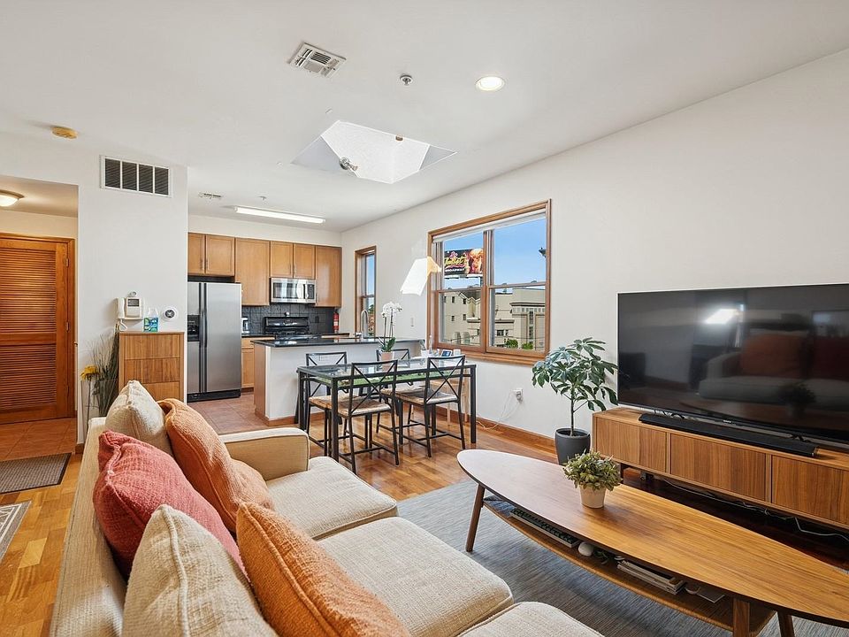Welcome to this sun-drenched penthouse condo in the heart of Union City! This top-floor corner unit offers sweeping views of the Manhattan skyline through oversized windows, filling the space with natural light all day long. Enjoy the ease of modern living with a brand-new washer/dryer, dishwasher, and microwave. The open layout features hardwood floors throughout, creating a warm and inviting atmosphere. Perched in a prime location just minutes from Manhattan with low monthly maintenance and an included garage parking space, this home blends style, comfort, and convenience. Don’t miss your chance to own this bright and beautifully updated city retreat!