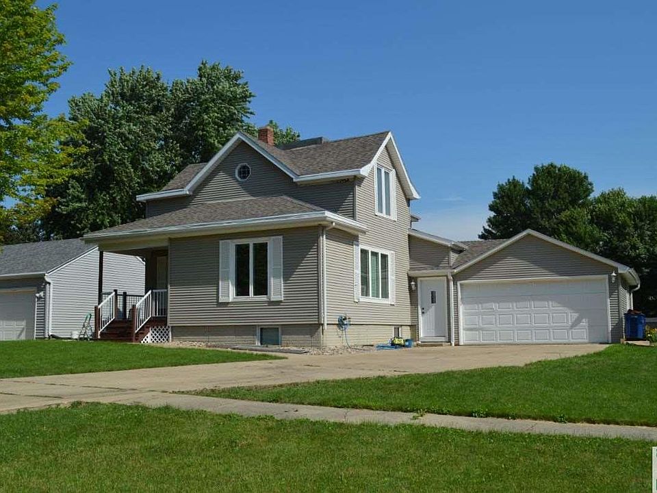 3 Bedroom (Potential 5), 3 Bath Home with Double Garage! Check out this spacious home with it's finished basement, vinyl siding, front porch & backyard deck, double attached garage and all the updates done to make it move-in ready with little to do! 1991 House moved on poured basement. 2013 In-floor heat in basement bathroom. Flat roof replaced and new shingles. 2014: Landscaping added with rock cement edging around house and swing set area. 2015: Kitchen updated with new flooring, counters, sink, faucet, recessed lights & textured ceiling and Stainless Steel appliances. (included). Living room and office had new carpet, windows, faux blinds. Front foyer and closet with organizers and vinyl flooring were added. 2019: Front porch had no-maintenance paint put on. Faux blinds were added in kitchen, living room, office and front entry Main floor bathroom sink and lights were added. Basement bathroom had cabinet, sink, faucet, and new lights fixture. 2020: Cabinets & ceiling repainted and ALL interior room walls painted. New garage door/ garage door opener and window. New basement bedroom doors and new front and side outside doors with new locks. All Upstairs and basement flooring was replaced with all new carpet. Upstairs bathroom had new vinyl flooring & new light fixture added. New 50 gallon electric water heater just put in. With 3 bedrooms (potential 5...windows not up to egress code), 3 bathrooms, an attached double car garage, ton of space and storage space/closets, this home may be what you've been waiting for! Appliances, Washer/Dryer, Backyard Play set, Water softener and window treatments are all included.