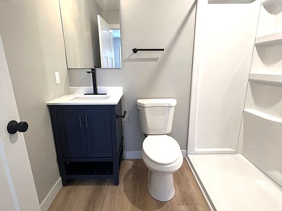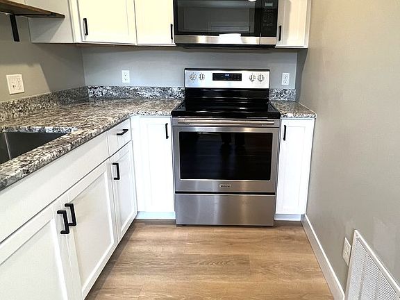 Featuring matte black finishes against a crisp white backdrop, this space is designed to impress. The kitchen offers all-new white cabinetry, quartz countertops, and stainless steel appliances. The bathroom, floors, trim, and doors are brand new, including 3-panel mission-style doors and luxury vinyl plank flooring in a natural wood tone. Neutral paint throughout provides a clean, modern look.