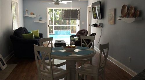 Spectacular St. Pete Beach POOL (Salt Water System and jets) home. This is a one of a kind adorable 2 bedroom 1 bath which has been completely updated. It is a clean home with a detached garage, swimming pool with waterfall and enclosure (lanai), granite counters and custom kitchen cabinets. Also included is the full furnishings of the home, including Lazyboy Couch, TV, Bedroom Furniture, Stainless Steel Appliances. This beach house is in the perfect location with being just a block and a half from the Gulf of Mexico, walking distance to the beach, intercoastal waterway, City Park, New city recreation center, public boat ramp, and several stores and restaurants. The back yard is the perfect oasis to kick back and relax with all the palm trees, large deck, swimming pool enclosed in a lanai. The only thing that this cute home is missing is its new owner, so don’t delay call today!! The home also has been used as a vacation rental home with monthly rentals, which the owner is willing to provide webpage, should you choose. Neighborhood Description The neighbourhood is extremely safe, close to all shopping and the neighbours are wonderful and friendly