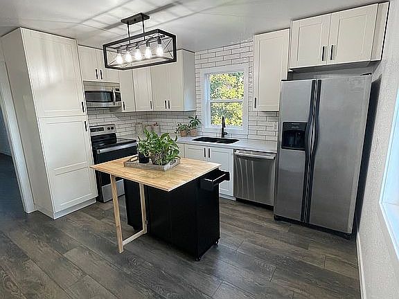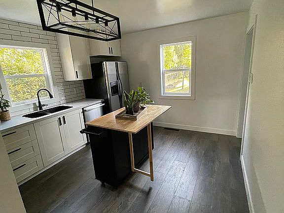 Check out this newly renovated home with two bedrooms and one bath. You are welcomed by the front entryway leading into a spacious living room. The kitchen features a brand new granite sink and white modern cabinets, including a large pantry with pull out shelves. There is a portable kitchen island and appliances include dishwasher, fridge, range/oven, and microwave. This house consists of all new flooring throughout. There is also all NEW windows, interior and exterior doors, trim, and baseboard. Bathroom is completely updated with beautiful vanity and shower. There is a 1/4 bathroom in the laundry room as well. All main rooms include ceilings fans and modern lighting. The outside features a large backyard with a detached garage. The house has stall siding and a brand new roof/shingles.