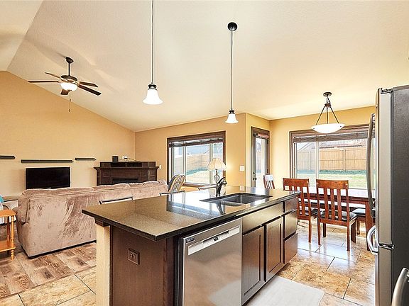 Welcome to your new home! This spacious and updated 5-bedroom, 3-bathroom residence boasts 2,721 finished square feet of comfortable living space and a convenient 3-car attached garage. Enjoy the ease of single-story living with numerous updates throughout. The kitchen features durable LVP flooring, an island, stainless steel appliances (which stay with the home), a pantry, and granite countertops. Step through the glass door in the dining area to access the patio and fenced-in backyard, perfect for outdoor entertaining. Relax in the inviting great room with its vaulted ceiling and cozy gas fireplace. Retreat to the primary suite, complete with a walk-in closet and private bath featuring a dual vanity. The lower level offers even more space with a spacious family room, walk-up wet bar, 2 additional bedrooms, a 3/4 bathroom, and a bonus closet ideal for storage. Outside, appreciate the beautifully landscaped yard (2023). Recent updates include a new roof and gutters (2023), new AC/furnace (2023), new water heater (2022), water softener (2022), washer and dryer (2021), custom blinds, and updated toilets. Don't miss the opportunity to make this wonderful home yours!