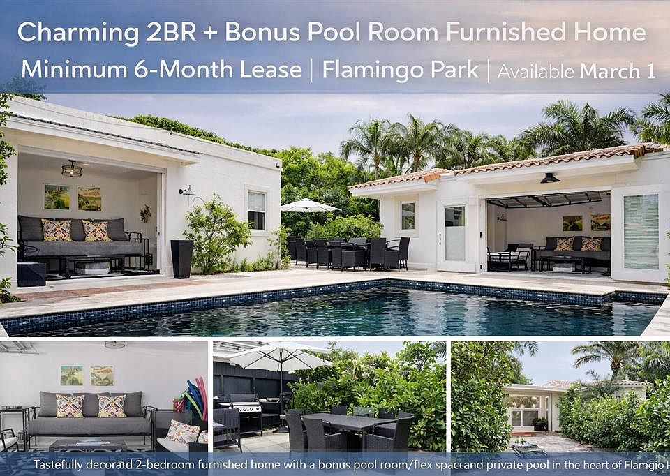Welcome to a tastefully decorated, charming, and sophisticated 2-bedroom furnished home with a private pool, ideally located in the heart of Flamingo Park--one of West Palm Beach's most sought-after historic neighborhoods.Perfect for those relocating to West Palm Beach or seeking a refined, turn-key residence while getting their bearings, this home offers light-filled interiors, curated furnishings, and effortless indoor-outdoor living. Step outside and enjoy the best of the neighborhood lifestyle: the Norton Museum of Art, Rosemary Square, and a morning routine at Equinox. Start your mornings at Pura Vida Miami or Hive Bakery & Cafe on nearby Antique Row, and enjoy evenings at restaurants like Estiatorio Milos.. a short drive across the bridge you are on Palm Beach! A rare opportunity!