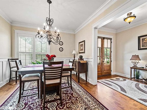Exceptional home in sought after Old Battles Village in Fairhope, Alabama. Craftsman style home built in 2013 with remarkable upgrades. This stunning home features plantation shutters, custom blinds, and features you will only find in a homemade to live in forever! Contemporary features with a classic design. The home is complete with whole home generator, gutters, and in pristine condition. This meticulously cared for home features an open floor plan offers 8 ft. beveled entry door, formal dining with wainscoting, hand scraped wood floors in living areas, 10 ft. ceilings, & plantation shutters throughout. The gourmet kitchen opens to a spacious breakfast/dining room, a huge island, Bosch appliances, granite countertops, walk-in pantry, gas range stove, stained cabinetry, and tile backsplash. Master suite features a walk-in shower and full-size garden tub, walk-in closet and very large master room to suit the finest of furnishings Master Bedroom feature: a tray ceiling and room for a sitting area, glamour bath with dual vanities, walk in shower, soaking tub and walk-in closet. Upstairs bonus/ bedroom 18 x 13 and has its own private bath, perfect for a theater room, play room or privacy for your teenager!! The picturesque backyard, enjoy quiet evenings on your back screened in patio, surrounded by beautiful oak trees and perfectly placed landscaping. Give me or your favorite realtor call today for a private showing. Additional Features: Back up Buddy system, zoysia grass, raised sprinkler system, and landscape lighting thought the backyard!!