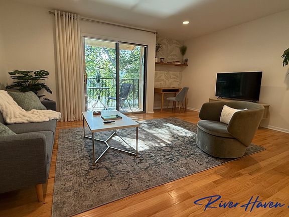Perfect for travel nurses, remote professionals, or corporate guests, this fully furnished two-bedroom apartment offers serene river views from every room including the private balcony. Recently renovated in July 2025, the interiors feature brand-new appliances, stylish elevated furnishings, and a thoughtful layout designed for comfort and convenience.