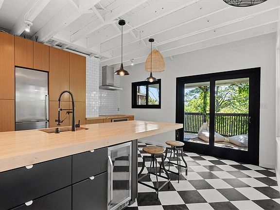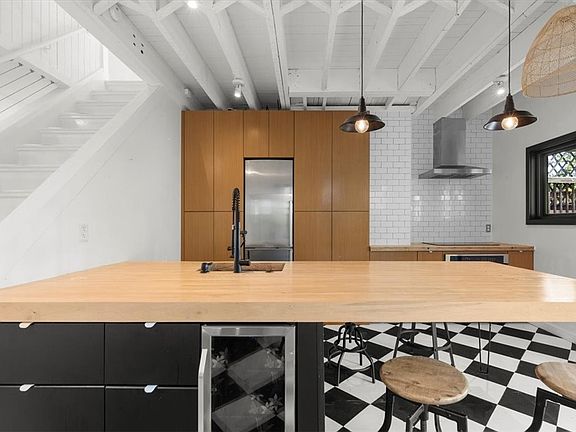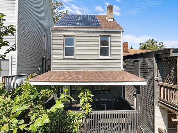 This unique home on a “step street” on the Southside Slopes marries rustic charm with timeless touches evoking the feel of both the unique city homes on the hillsides of San Francisco and a secluded cottage in the woods. Minutes from Station Square, downtown or Mt. Washington. Multi-level outdoor spaces offer views of both the cityscape and hillsides. The cozy living room has a large stone fireplace with gas logs. Off of the living room there is a large light-filled primary bedroom with an expansive view. The lower level has a bright open kitchen with a loft feel and high-end appliances incorporated into a full wall of custom cabinetry and a large butcher block island. There is a sliding-glass door opening to a large deck overlooking the hillside - perfect for entertaining friends. The spa-like spacious and beautifully appointed bathroom has a soaking tub and a glass-walled steam shower. The upper level of the home has two bedrooms, one with a stunning view of downtown.