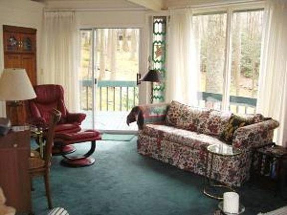 This 2 bedroom, 3 bath round house sits on a third acre of land in a wooded setting. The lower floor has a guest bedroom and bath, and a separate room for the laundry and air handler. The main floor can be accessed from either the inside lower floor via the spiral staircase or outside stairway to the deck area. There are two parking areas on the property, one with a carport, and a lower uncovered area. The home is extremely efficient, furnished, and decorated for someone to move-in.