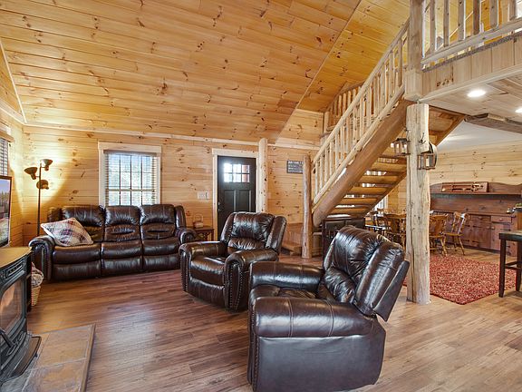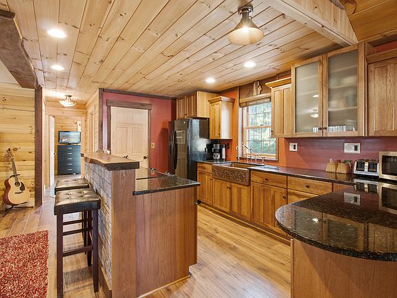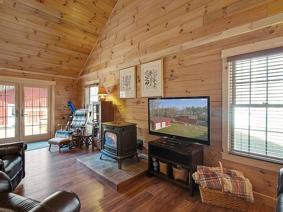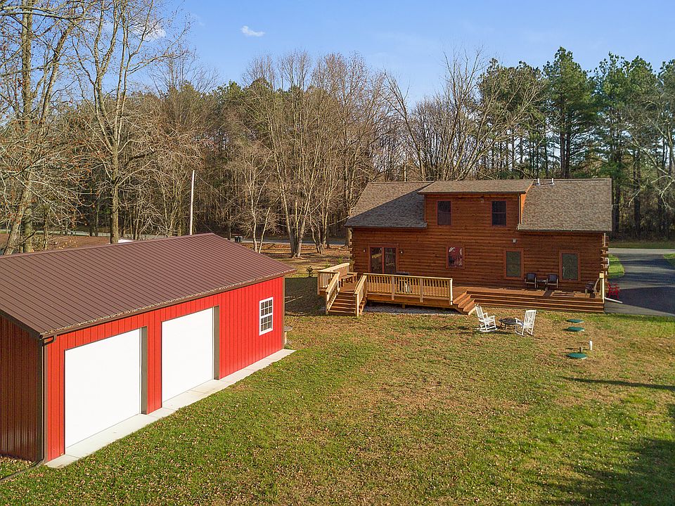 Nothing feels more like a true escape from the noise and hassle of today's world than living in a log cabin. Especially when that log cabin is across the street from Lums Pond State Park. This quaint and cozy, carbon conscious home has an open floor plan combined with thoughtful design touches. Numerous large windows create light filled spaces and wooded views throughout. Inviting covered front porch entrance to spacious great room with soaring cathedral ceiling, energy efficiency pellet stove and french doors to the expansive back deck and cleared yard backing to wooded county land. Kitchen includes Kraft Maid hickory soft close cabinets with molding, center island with stove and breakfast bar, pantry, granite counters and gorgeous copper farm sink. Charming dining area, two bedrooms and tiled full bath complete the first floor. Upstairs includes two loft areas that overlook the great room plus the master bedroom with walk-in closet and wonderful stone and tile master bath with extraordinary copper claw tub, vessel sink vanity and radiant floor heat. Massive pole barn includes two heated living spaces: one currently used as an office and the other a bedroom along with an oversized two-car garage. The 4-ft high crawl space under the home makes for ideal storage. Other features include: on-demand water heater, leased solar panels, second floor laundry, wood blinds and all appliances included. A beautiful and secluded setting convenient for commuting, shopping and entertainment.