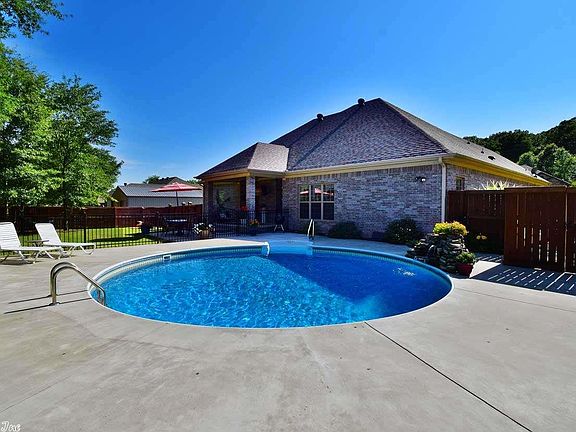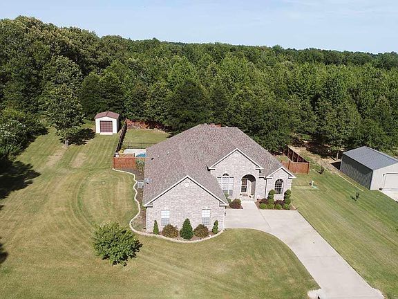 $3000 in closing costs pd. by seller with acceptable offer! Custom home with a Summer Oasis! Including an gated inground salt water pool, rock waterfall, fire pit, hammock, outside speakers and bow range.This quiet lot borders a forest, no thru traffic.! 14x18 metal building, steel storm shelter, and storm doors. Interior boasts a massive gourmet kitchen with up grated self closing cabinets, a large 2nd living area/3rd bed. Over sized master bedroom with 3 walk in closets, tray ceiling, and attached office.