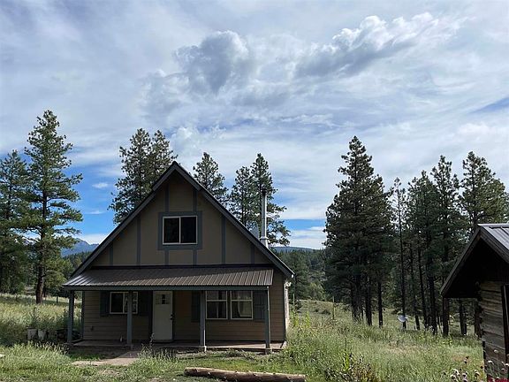 Live on this pristine 3.5-acre property while you build your dream home! With septic approval for a 2-bedroom house and no HOA, this is the perfect opportunity for those seeking tranquility yet close to downtown.   Enjoy breathtaking views of the Mount Pagosa Range, and relish the privacy offered by bordering a private ranch with a Conservation Easement. Nestled at the end of a quiet cul-de-sac, you'll find large, mature trees and a peaceful atmosphere.  The existing home, converted from a garage, features a modern kitchen and great room area. Upstairs, you'll find a spacious bedroom, a full bath with a separate vanity, and a versatile space for an office, den, or additional bedroom.  Don't miss out on this unique opportunity to live in harmony with nature while you create your ideal mountain retreat!   Following county guidelines, you can use this property for short term rentals.