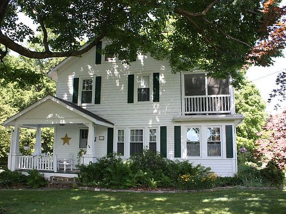 Experience the charm of this beautiful circa 1928, 4 bedroom farmhouse with original features and quality craftsmanship that has been lovingly maintained by one family for nearly 50 years. An ideal hobby-farm, perfectly located on 4 picturesque acres with pastures, a mature garden, stone walls, smokehouse and multiple outbuildings, including a workshop with electric. Surrounded by lush woods and scenic fields to be enjoyed from both an enclosed sun room and a screened-in porch. Hardwood floors, formal moldings, wainscoting, pedestal sink, antique-style built-in cabinetry, stain glass work, wood stove. Many recent improvements including roof, windows, furnace, sheet rock, electric, driveway. A generator for the winters. 2-car garage. Partially finished attic perfect for playroom, office or an extra bedroom. Private and quiet while conveniently located. A truly unique property for our area. A home you will adore that is priced to sell.
