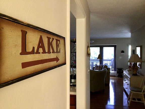 Walk in and take in the view! Beautiful lake and lots of serene wildlife across the cove. This lovingly cared for 3 br 3 1/2 bath townhouse is centrally located to shopping and dining. Upper level over looks the lake and has a walk out balcony, two bedrooms ..each with an attached full bath. The lower level is a flex room for bedroom or den.with a full bath..Comes with a Murphy bed plus sleep sofa and walks out to a covered porch overlooking the lake. Storage galore! And comes with a deeded covered boat slip and pwc lift .. all just steps from your lakeside porch.